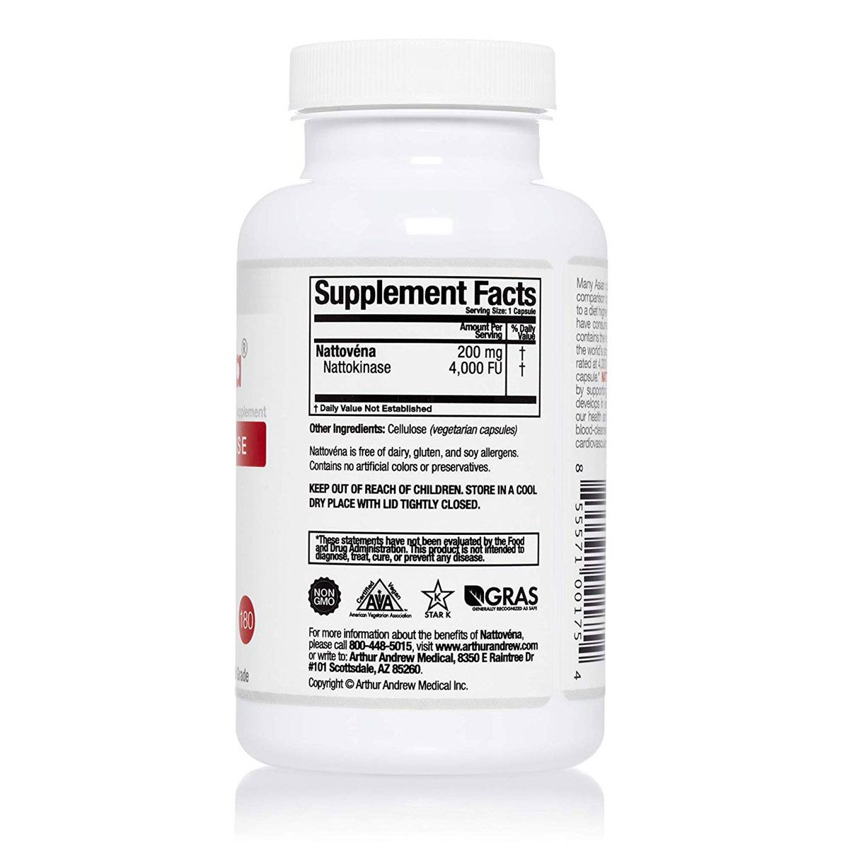Nattovéna Nattokinase 4.000 FU – 180 kapsler | Premium enzymtilskud, vegansk & høj dosering - Arthur Andrew