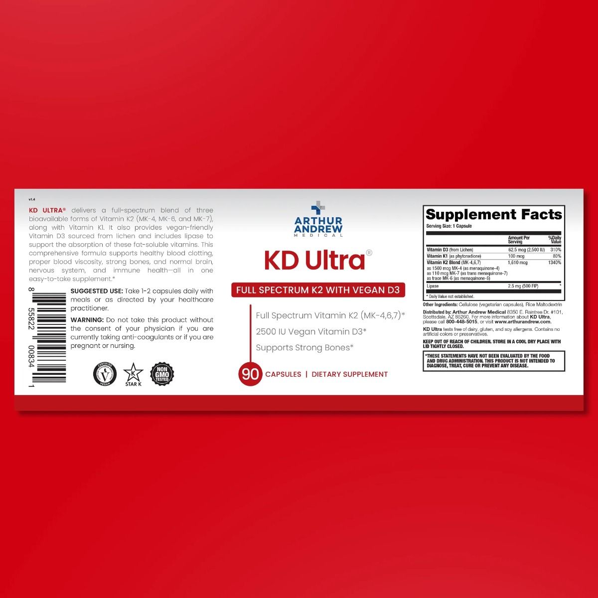 KD Ultra® (90 kapsler) | Fuldt spektrum af Vitamin K2 med Vegansk Vitamin D3 – Arthur Andrew